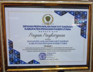 Dewan Perwakilan Rakyat Daerah Kabupaten Penajam Paser Utara Memberikan Piagam Penghargaan Kepada Badan Keuangan dan Aset Daerah Kabupaten Penajam Paser Utara “Terbaik 1” Kategori Organisasi Perangkat Daerah Berkinerja Keuangan dan Akuntanbilitas Kinerja Instansi Pemerintah (AKIP) Dilingkungan Pemerintah Kabupaten Penajam Paser Utara Tahun Anggaran 2022, Penajam 11 Maret 2024.