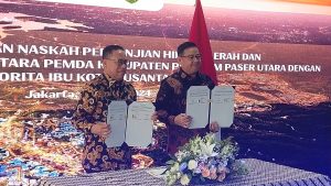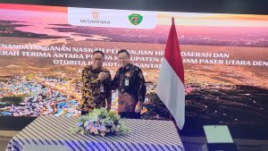 Penandatanganan perjanjian hibah dan serah terima Barang Milik Daerah (BMD) ini merupakan bentuk tanda saling dukung dalam meningkatkan sinergi antara Pemerintah Daerah Kabupaten Penajam Paser Utara dengan Otorita Ibu Kota Nusantara. Jakarta, Jum’at 7 Juni 2024.