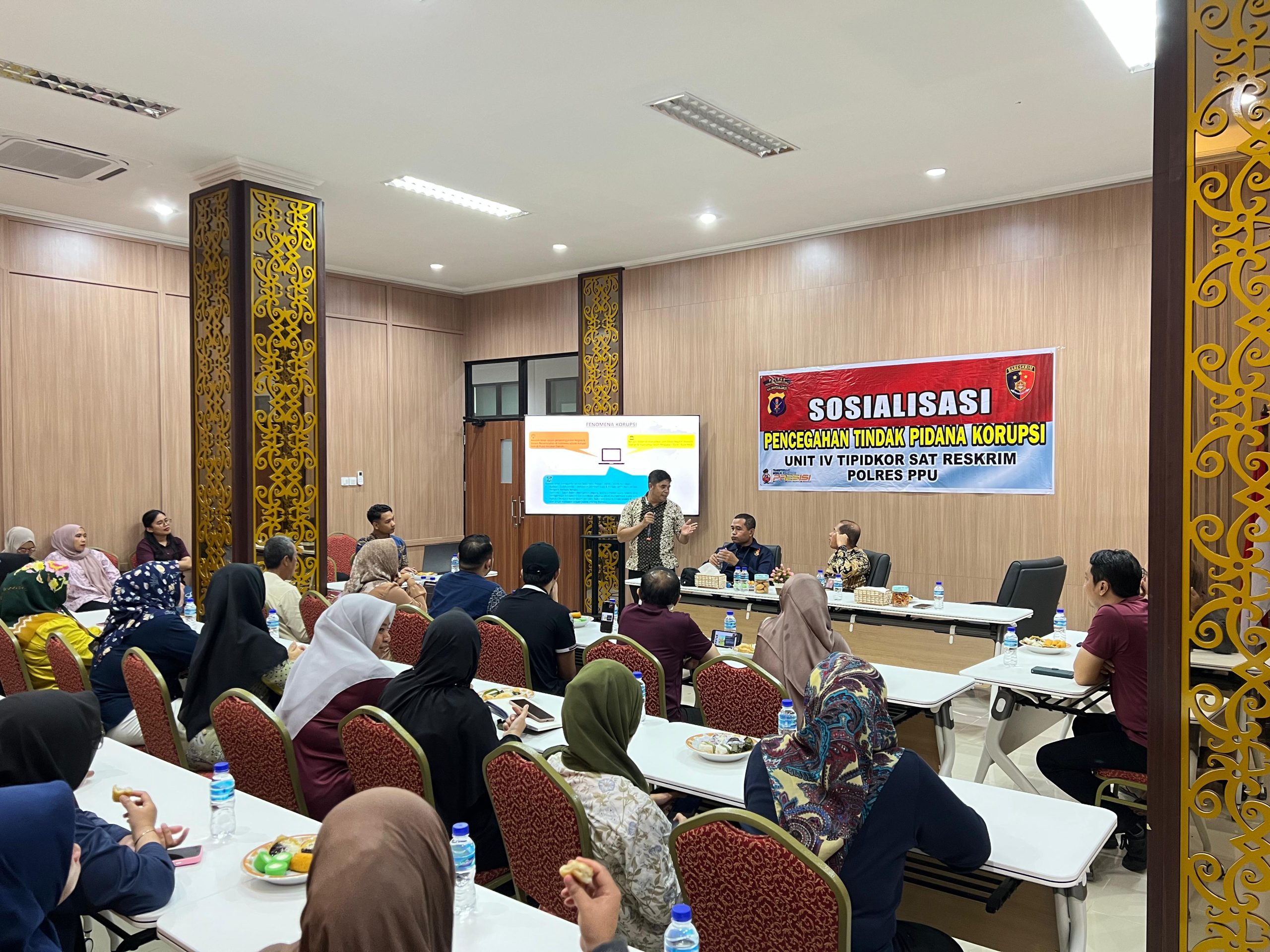 Polres Kabupaten Penajam Paser Utara menyelenggarakan kegiatan Sosialisasi Pencegahan Tindak Pidana Korupsi yang dibawakan oleh Unit IV Tipidkor Sat Reskrim Polres PPU.
