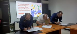 Kepala Badan Keuangan dan Aset Daerah Muhajir, SE.,S.Kom.,ME.,M.Ling melakukan Penandatanganan Berita Acara Rekonsiliasi Pajak Semester II (dua) Tahun Anggaran 2024 didampingi oleh Kepala Bidang Perbendaharaan Hengki Nur Triwijaya, SE.