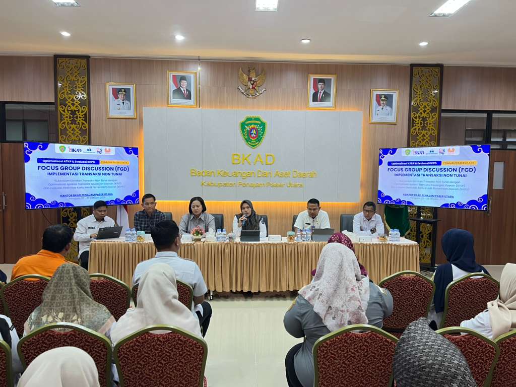 Kegiatan Focus Group Discussion Implementasi Transaksi Non Tunai dibuka oleh Sekretaris Badan Keuangan dan Aset Daerah Hj. Ruliyana, SE., MM didampingi oleh Kepala Bidang Perbendaharaan Hengki Nur Triwijaya, SE hadir juga pihak PT. BPD Kaltim Kaltara Cabang Penajam Donny Penyelia Pemasaran dan Layanan Prioritas, Ni Made Mega Siswanti Penyelia Layanan Nasabah, dan Yuliwan Saputra Divisi Funding dan Customer Managent BPD Pusat.