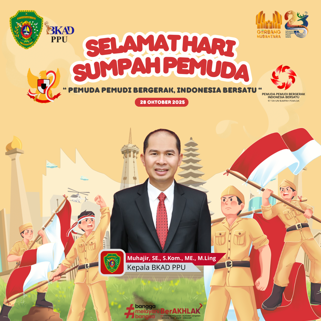 Seluruh keluarga besar Badan Keuangan dan Aset Daerah Kabupaten Penajam Paser Utara mengucapkan “Selamat Hari Sumpah Pemuda” 28 Oktober 2025 “Pemuda Pemudi Bergerak, Indonesia Bersatu”.