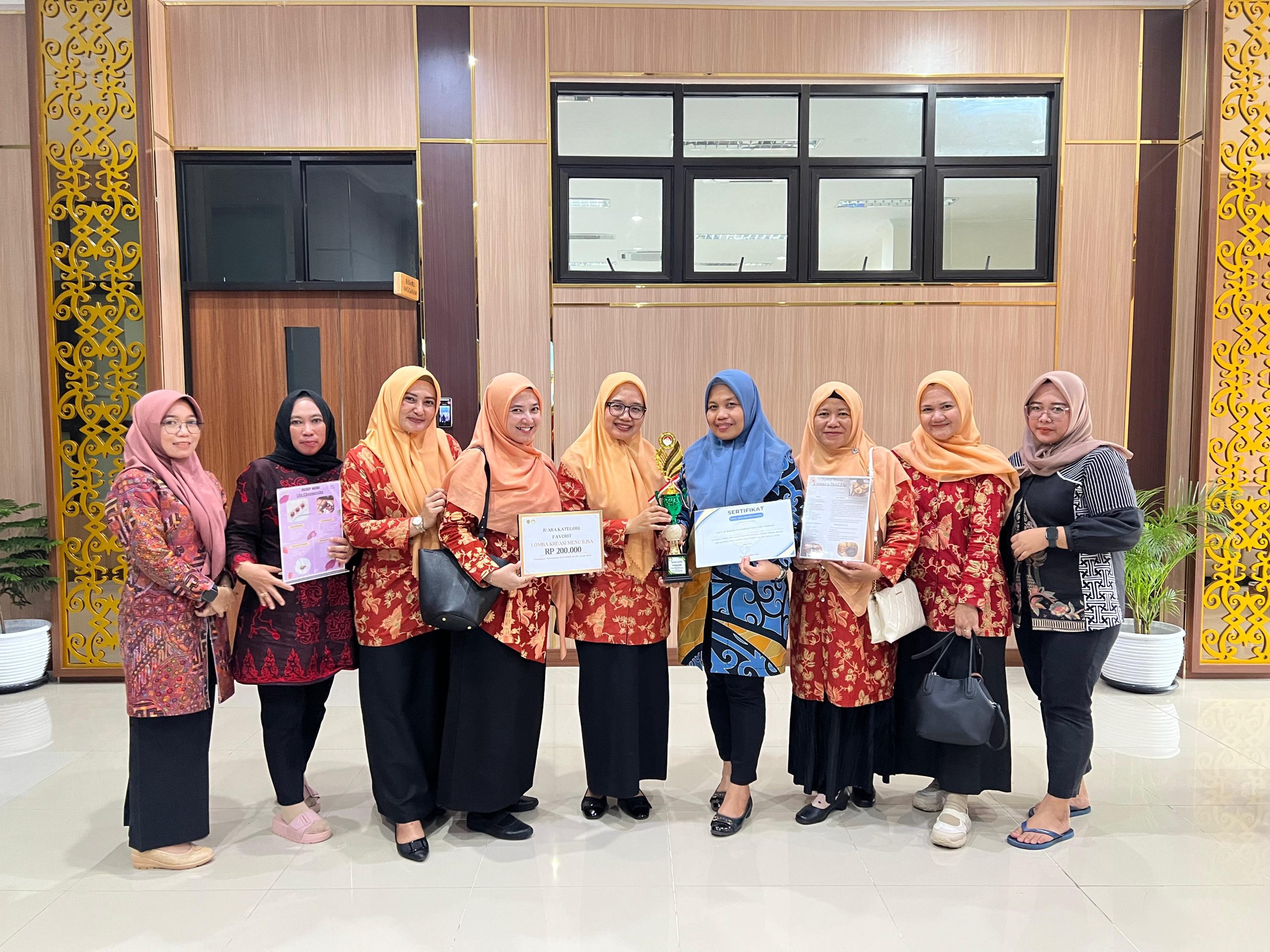 Dharma Wanita Persatuan Badan Keuangan dan Aset Daerah memperoleh “Juara Favorit” kategori oalahan Kudapan pada lomba kreasi menu yang diselenggarakan oleh Dinas Pangan, Tanaman Pangan dan Hortikultura Provinsi Kalimantan Timur.